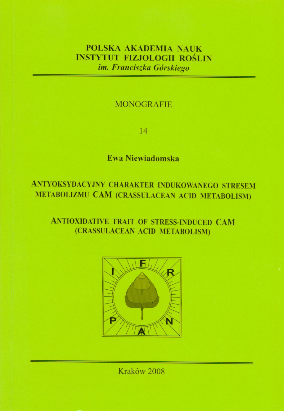 Ewa Niewiadomska “Antioxidative trait of stress-induced CAM (Crassulacean Acid Metabolizm)”, Monograph, Language: In PL, with ENG summary, figures and tables description, Krakow 2008, Pages: 63