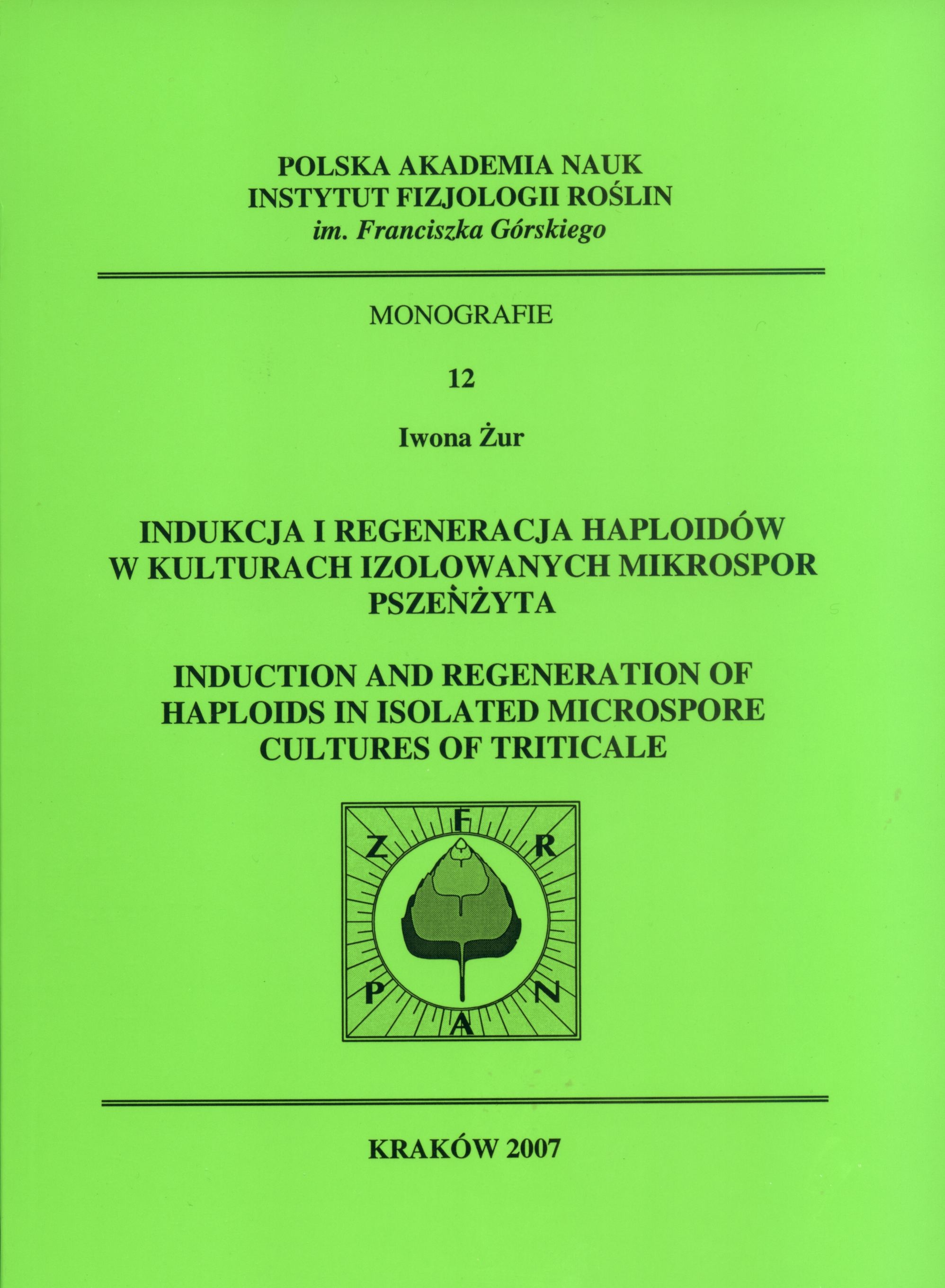 Iwona Żur “Induction and regeneration of haploids in isolated microspore cultures of triticale”, Monograph, Language: In PL with ENG index of content and summary, Krakow 2007, Pages: 185